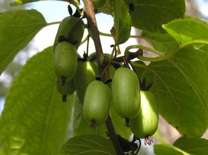 Саженцы Актинидии Коломикта Земляничная дарят своим владельцам овальные гладкие плоды с зеленой окраской и приятными земляничными нотками.