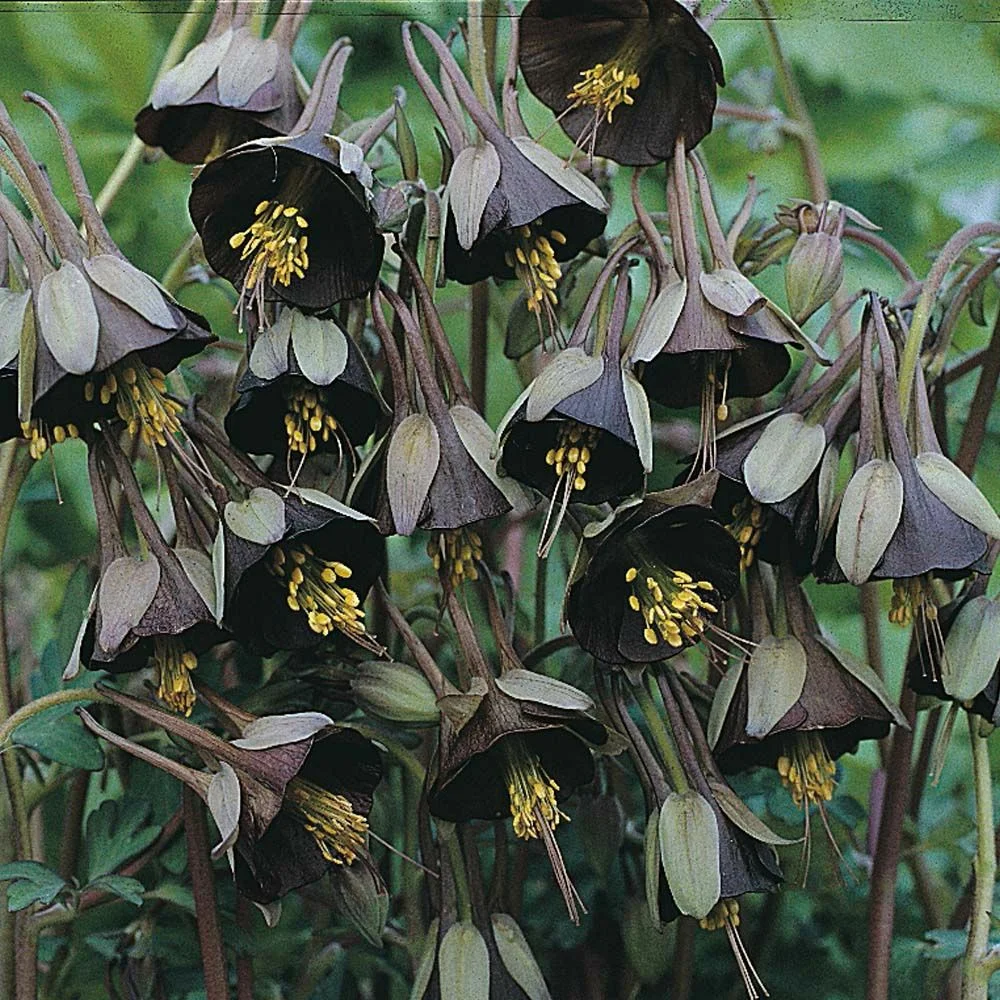 Саженцы аквилегии (Водосбора) зеленоцветковой отличаются неприхотливостью и зимостойкостью, что порадует начинающих и опытных садоводов. Их можно использовать для оформления альпийских горок, рокариев или миксбордеров. Куст состоит из нескольких прямых опушенных стебельков, на которых распускаются темно-фиолетовые, почти черные цветы. Высота взрослого растения равна 25–30 сантиметрам. Для посадки рекомендуется выбирать хорошо освещенные или слегка затененные участки с песчаной или супесчаной почвой. Срезанные цветы можно использовать для составления зимних букетов.