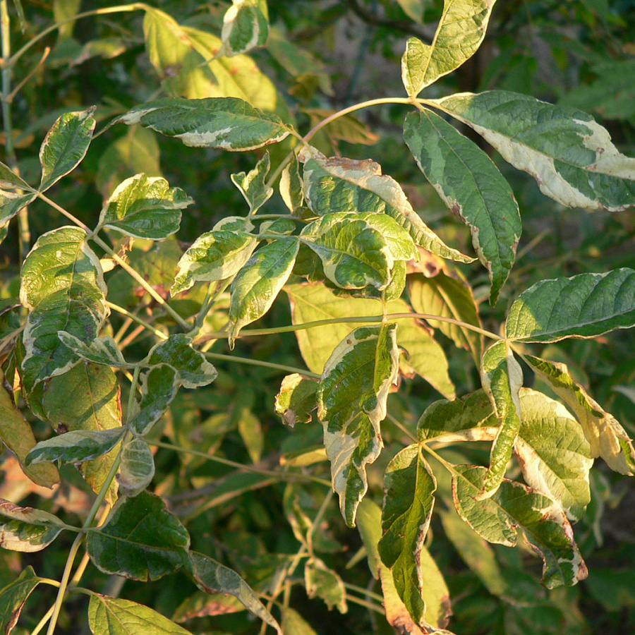 Саженцы клена ясенелистного Аурэомаргината (Aureomarginata) привлекают внимание необычными перистыми листьями нежно-зеленого цвета с желтой каймой. Форма кроны рыхлая и очень живописная. Побеги усеяны пестрыми листьями по 3-7 штук, осенью меняющими цвет на золотисто-зеленый. Высота эффектного крупномера 5-7 м. Весной зрелищно наблюдать, как почки раскрываются в карминно-розовые побеги и листья, которые постепенно белеют и зеленеют. Клен ясенелистный Аурэомаргината хорошо смотрится в групповых посадках и как акцент. Цветет мелкими цветками и плодоносит крылатками с двумя лепестками. Достоинства: