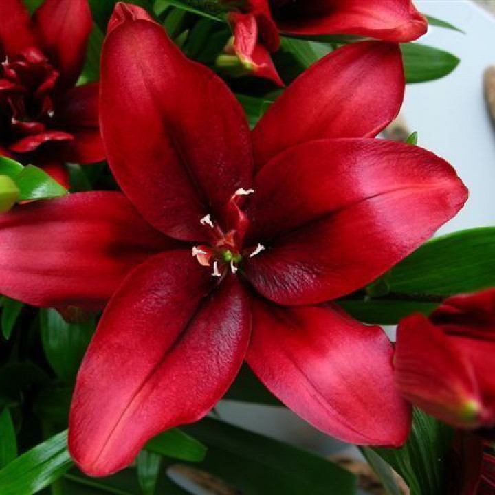 Луковицы Лилии азиатской махровой Блад Бразерс (Lilium asiatic double Blood Brothers) - «изюминка» любого сада. Для восточной красавицы потребуется достаточно места, так как ее цветоносы растут не только вверх на высоту до 80 см, но и в стороны. Сорт ценится за очень большие (до 17 см) цветки насыщенного малиново-красного цвета, отличающиеся глянцевым блеском и махровостью. В течение двух месяцев, начиная с середины-конца июня, Блад Бразерс яркими пятнами выделяется на фоне остальных садовых растений. Удачно подобранные цветы-компаньоны создадут композицию удивительной красоты.