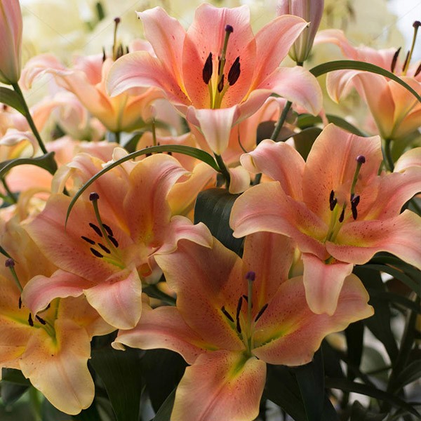 Очень красивая Лилия. Уже в июле на высоких цветоносах (до 120 см) появляется одновременно много цветков (на отдельных кустах — до 30 штук), которые достигают 25 см в диаметре. Лепестки матовые, окрашены в светлый персиковый оттенок с плавным переходом к яркому лососевому в центре. Цвет классический и создает правильные акценты в композициях, но не менее эффектно смотрится и в отдельности. Лилия Зелмира — один из самых популярных и узнаваемых сортов. Он особенно ценится благодаря простоте в уходе. Цветы могут расти на одном месте до 4–5 лет в условиях регулярного добавления минеральных подкормок. На зиму растение нуждается в укрытии и хорошо переносит морозы в открытом грунте.