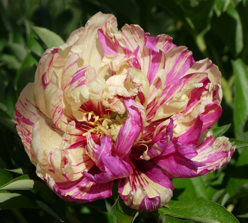 Рассада пиона ИТО Лоллипоп (Lolliepop): выносливый сорт добавит в сад свежесть и задор, благодаря пестрым махровых цветкам. На лепестках кремово-лимонного цвета как будто небрежной кистью нанесли яркие малиновые полосы. На каждом побеге может образовываться по несколько бутонов. Резная узкая листва сохраняет декоративность до наступления холодов. Пышные кусты достигают высоты 90 см. Часто завязываются семена. Особенности посадки пиона Лоллипоп: