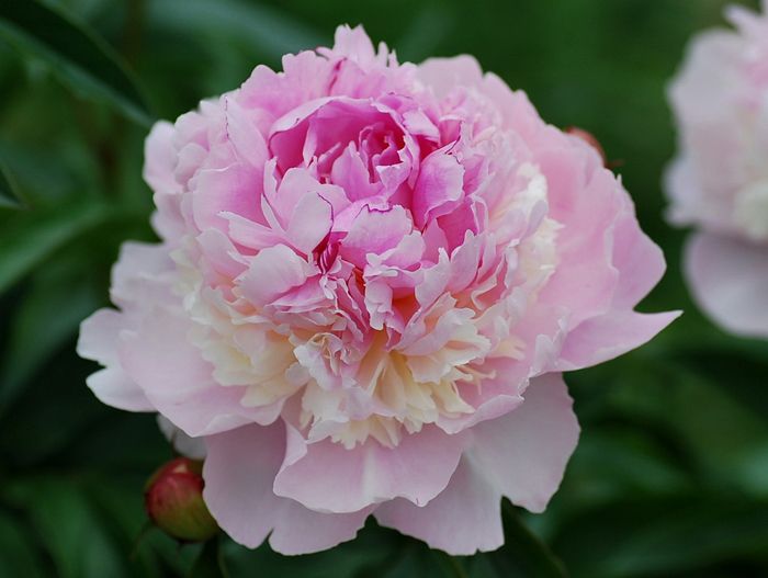 Рассада пиона молочноцветкового Эденс Парфюм (Eden's Perfume) отличается притягательным ароматом, что делает его прекрасным составляющим для летних букетов. Оттенок у цветков нежный жемчужно-розовый с редкими вкраплениями оттенков фуксии или крем-брюле.  Бутон очень пышный: с двумя рядами нижних лепестков, которые окружают очаровательный шарик из узких гофрированных лепесточков.