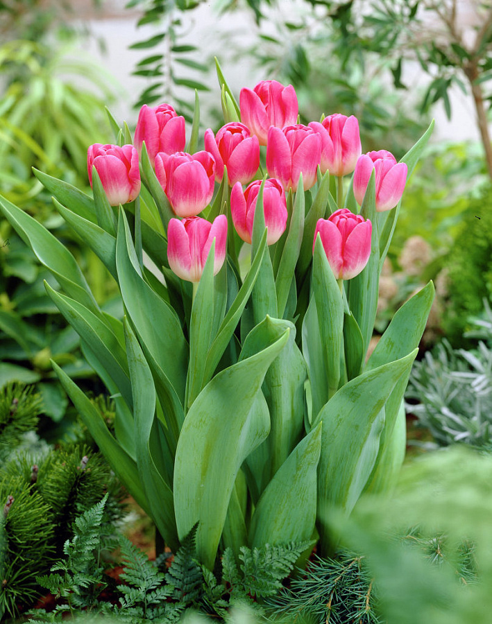 Тюльпан Розарио - это великолепное растение с насыщенно-розовыми цветками и белым основанием, которое поражает своей красотой и изяществом. Этот многолетний цветок достигает высоты до 45 см и идеально подходит для групповых и одиночных посадок. Листья травянистые, а ствол прочный и устойчивый.